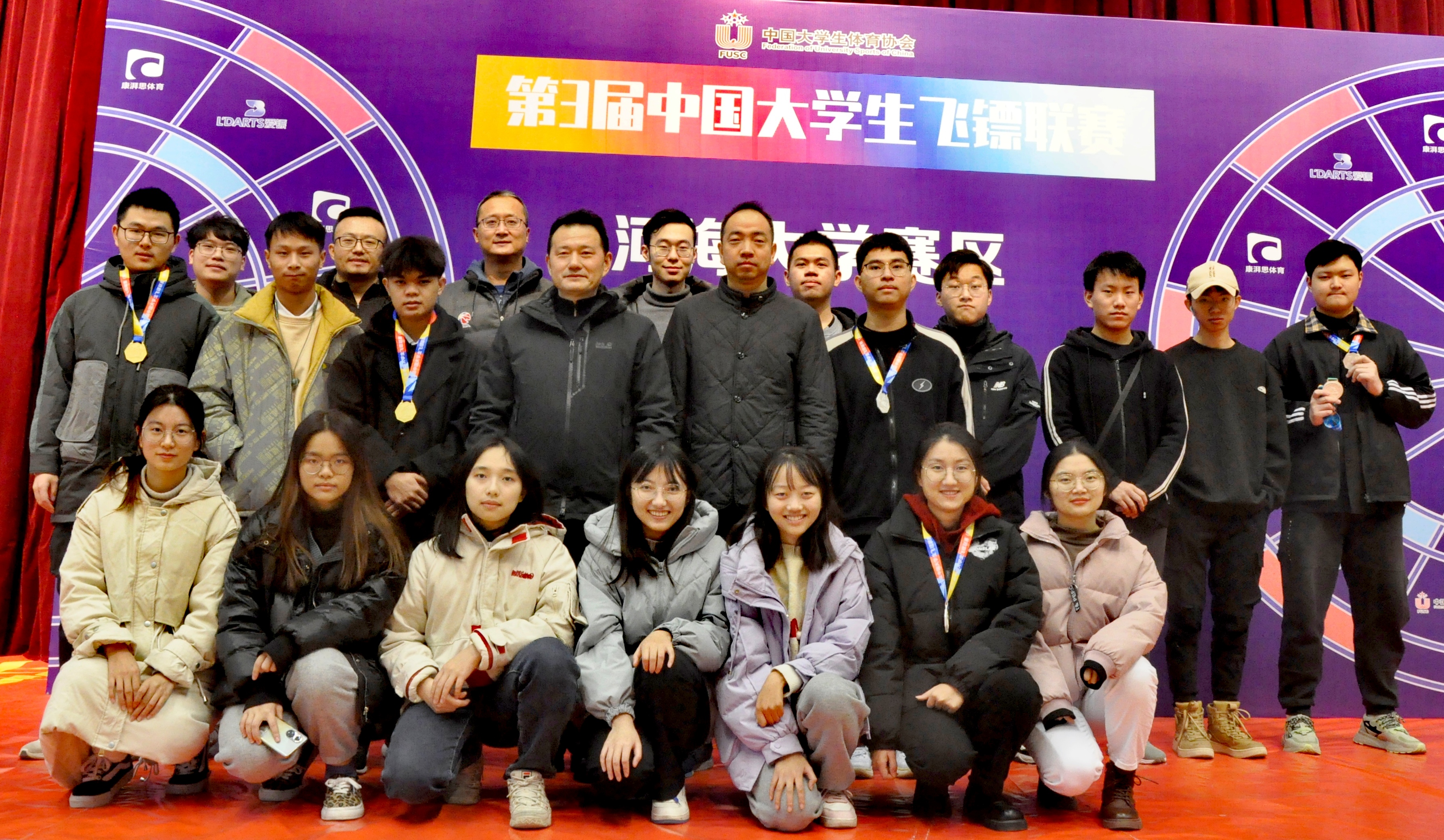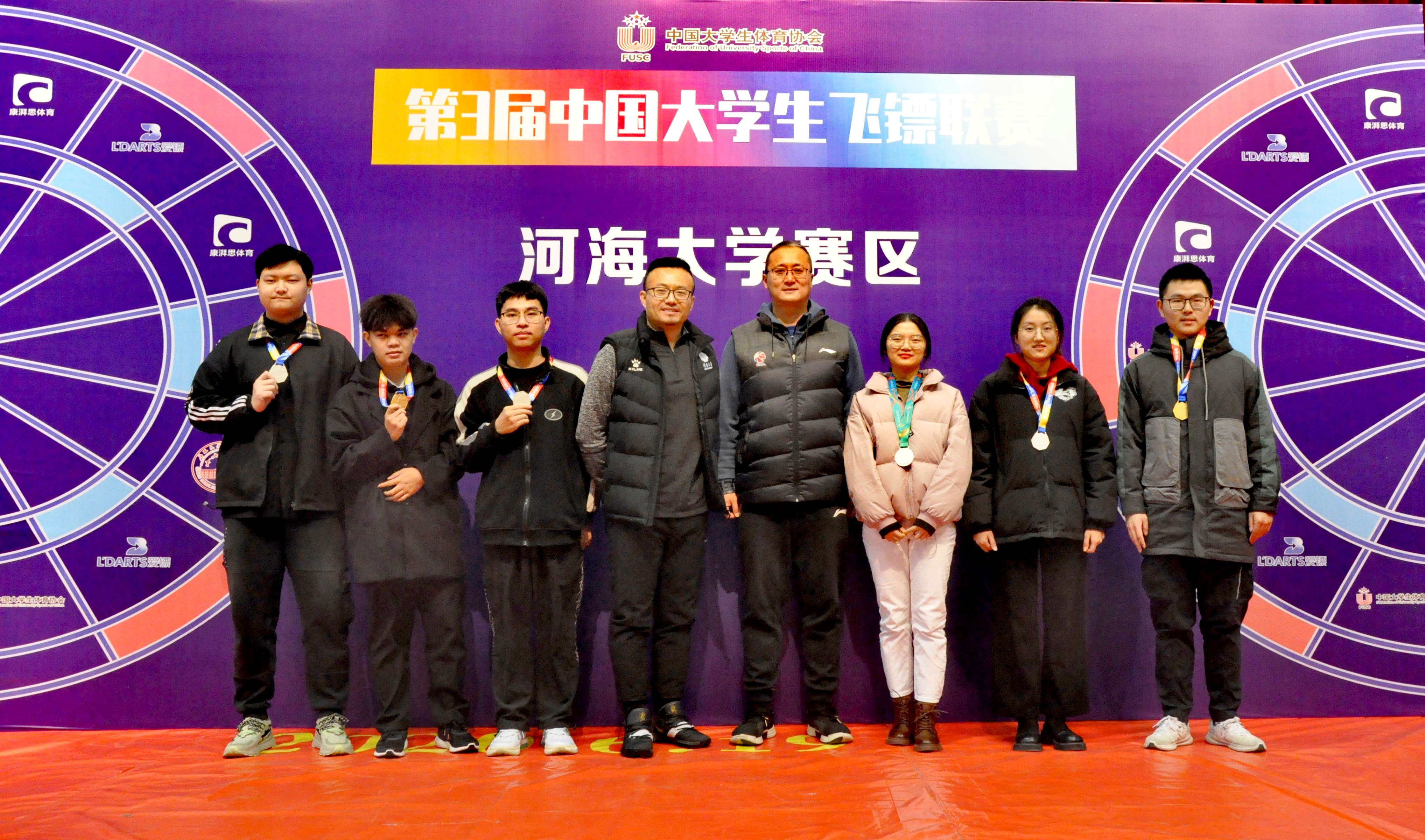 大学生飞镖比赛,由教育部中国大学生体育协会主办,共有来自全国各地28所院校共500多名大学生参赛。我校飞镖队面对各路强队,毫不畏惧、愈战愈勇,凭借过硬的技战术和稳健的心理素质迎难而上,最终不负众望斩获双冠!