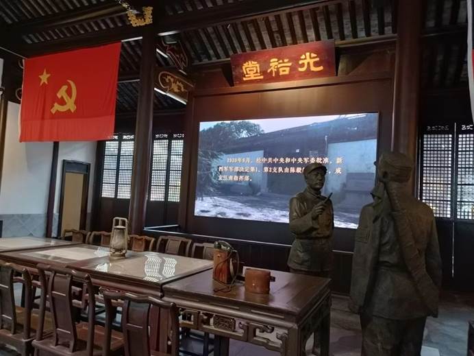 全体师生在讲解员的引导下先后参观了新四军江南指挥部史料展览馆、新四军廉洁思想教育馆、新四军江南指挥部司令部旧址。通过馆内陈列大量珍贵的革命文物和图片史料,深入了解了新四军江南部队在陈毅将军、粟裕将军的率领下,深入苏南敌后,开创和发展苏南抗日根据地的战斗历程。