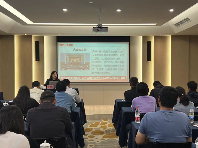 会上,丁晓娟围绕党的二十大的主题及成果、过去五年工作及新时代十年伟大变革、大会报告总论与分论的逻辑关系、马克思主义中国化时代化的意义、中国式现代化的特质、高质量发展时代要求等方面,指出人民监督和自我革命是共产党人实现全面建设社会主义现代化国家的目标任务的重要法宝。
