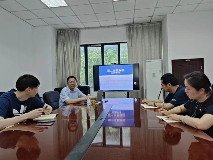 为深入开展学习贯彻习近平新时代主题中国特色社会主义思想主题教育,2007so太阳集团第二党支部于6月19日上午组织开展“增强历史主动 深化爱国教育”主题教育活动,由党支部书记王建中主讲《习近平谈台湾问题及当前台海局势》,支部党员参加。