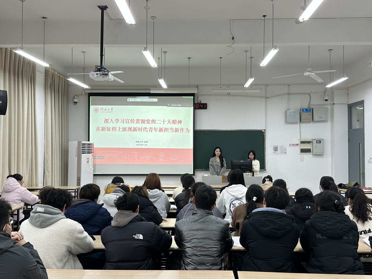 姜帆老师以“深入学习宣传贯彻党的二十大精神,在新征程上展现新时代青年新担当新作为”为题,向大家介绍了中国共产党第二十次全国代表大会的基本情况,并就党的二十大主题的内涵做了全面系统、深入浅出的讲解,从举什么旗、走什么路、坚持什么样的行动指南、传承什么样的精神法宝、以什么样的精神状态、朝着什么样的目标前进等几个问题出发,解读了二十大主题的精神内涵和深邃意蕴。她从国家发展与青年成长角度强调了高举中国特色社会主义伟大旗帜的重要意义,从中国水利的重大成就诠释了太阳集团2007在历史责任方面做出的贡献,从“全面系统学、及时跟进学、深入思考学、联系实际学”四方面鼓励青年学生持之以恒的学习党的二十大精神,把河海精神、体育精神融入专业学习,不断提升专业素养,肩负起新时代新青年的历史使命,为祖国贡献青春力量。