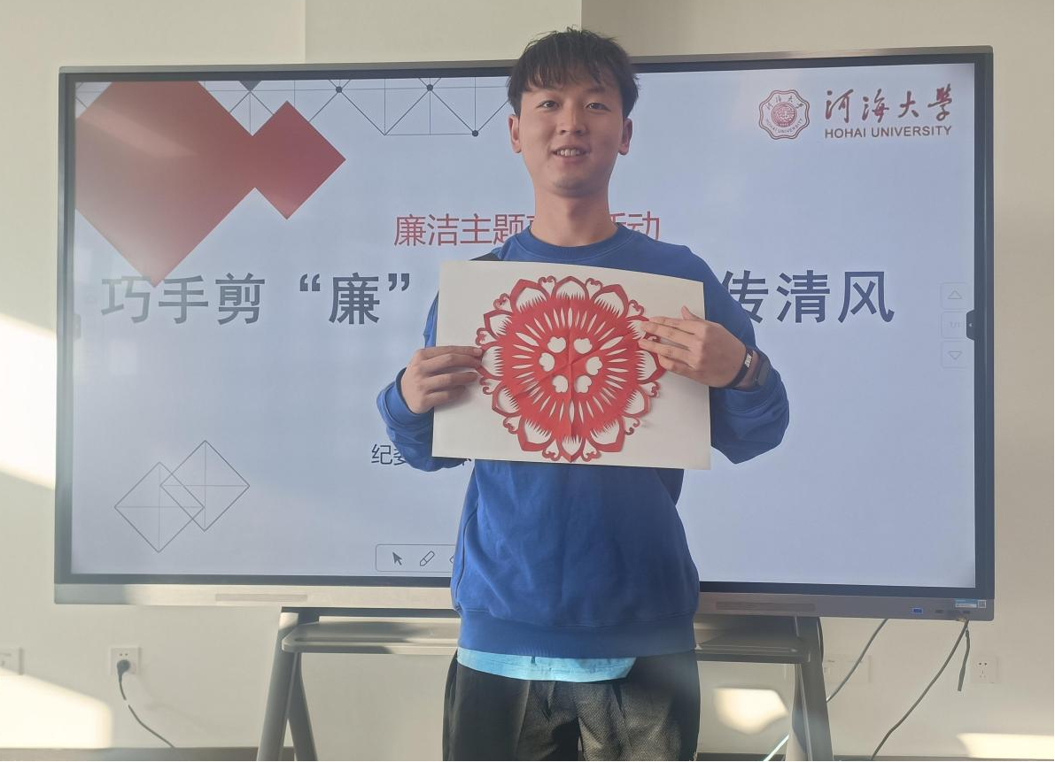 何雅雯老师为同学们讲授了金坛刻纸的历史和基础知识,对刻纸技艺进行生动的讲解与展示,并“出淤泥而不染”的莲花为创作要素,现场教授学生刻纸。金坛刻纸幅式灵活、表现细腻、构图精细,水之子们近距离地观赏和感受这一非遗技艺的独特魅力,在学习刻纸知识与技巧后通过自己构图、描摹、雕刻,创作出一幅幅立意深远的“莲花”“廉”等廉洁刻纸作品,不仅体验了动手刻纸的乐趣,还传递了以廉为荣、以廉为美的正能量,形成良好的师生互动氛围。