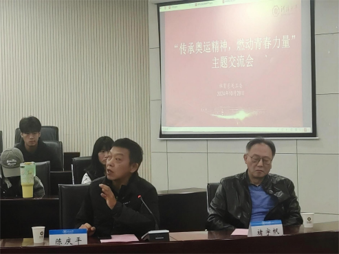 在学生发言环节,与会学生积极就如何传承“奥运精神”和“河海体育精神”进行了深入的探讨和交流。师生们在交流讨论环节中畅所欲言,共同探讨了体育精神在当代青年中的意义和实践路径。