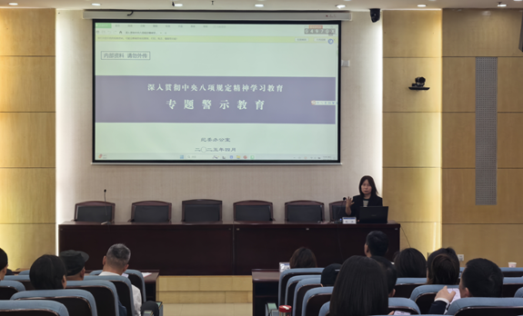 书记刘江做了关于深入贯彻中央八项规定精神学习教育专题警示教育的党课,她强调作风建设的重要性,党员干部要深刻理解中央八项规定中央八项规定及其实施细则精神,她通过一桩桩案例与在座师生进行近距离剖析、警示,要求全体师生都要汲取典型案件教训,举一反三、警钟长鸣,真正把身边人的教训转化为刻在心底的警醒,始终要坚守底线,不踩红线,不碰纪律的高压线。