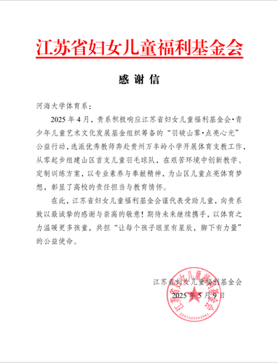 2025年4月,受江苏省青少年艺术发展基金邀请,我系桂冰老师奔赴贵州兴义,走进兴义市田字格万峰林民族实验学校,开展为期一周的羽毛球公益教学活动。