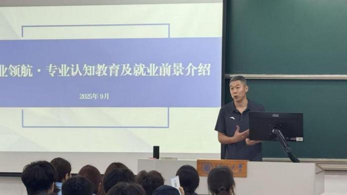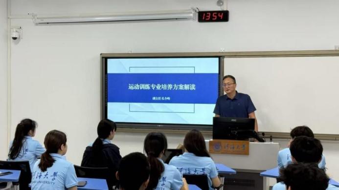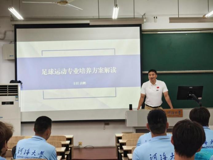 2025级本科生开展学业领航·专业认知教育及就业前景介绍。唐鹏主任、孔令峰副主任分别向本科新生们解读足球运动、运动训练本科专业人才培养方案,教学秘书蔡锦老师解读学生学籍管理办法,辅导员刘思辰老师解读本科生学生手册,紧密结合国家竞技体育发展战略,同学们理解了专业情况与大学学习任务,初步确立了大学目标和发展规划,交流环节中,大家表示要争做具有国家认同、民族情怀,集现代教育理念、完备学科素养、扎实理论功底和出色实践能力为一体的优秀体育人才。