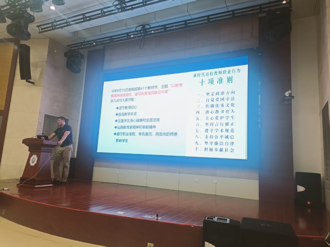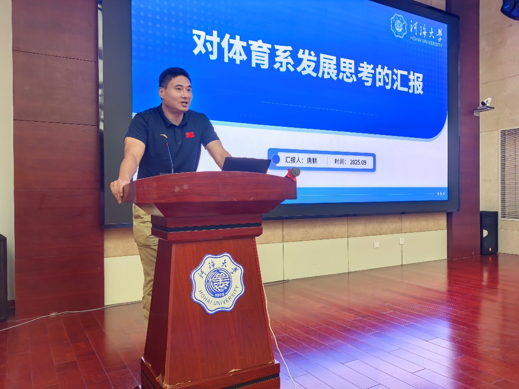 河海人健康事业,为体育健康发展贡献力量。系主任唐鹏领学了《习近平给全国特岗教师代表的回信》,强调全体教职工要牢记新时代高校教师职业行为十项准则,以教育家精神铸魂强师,谱写教育强国建设华章。